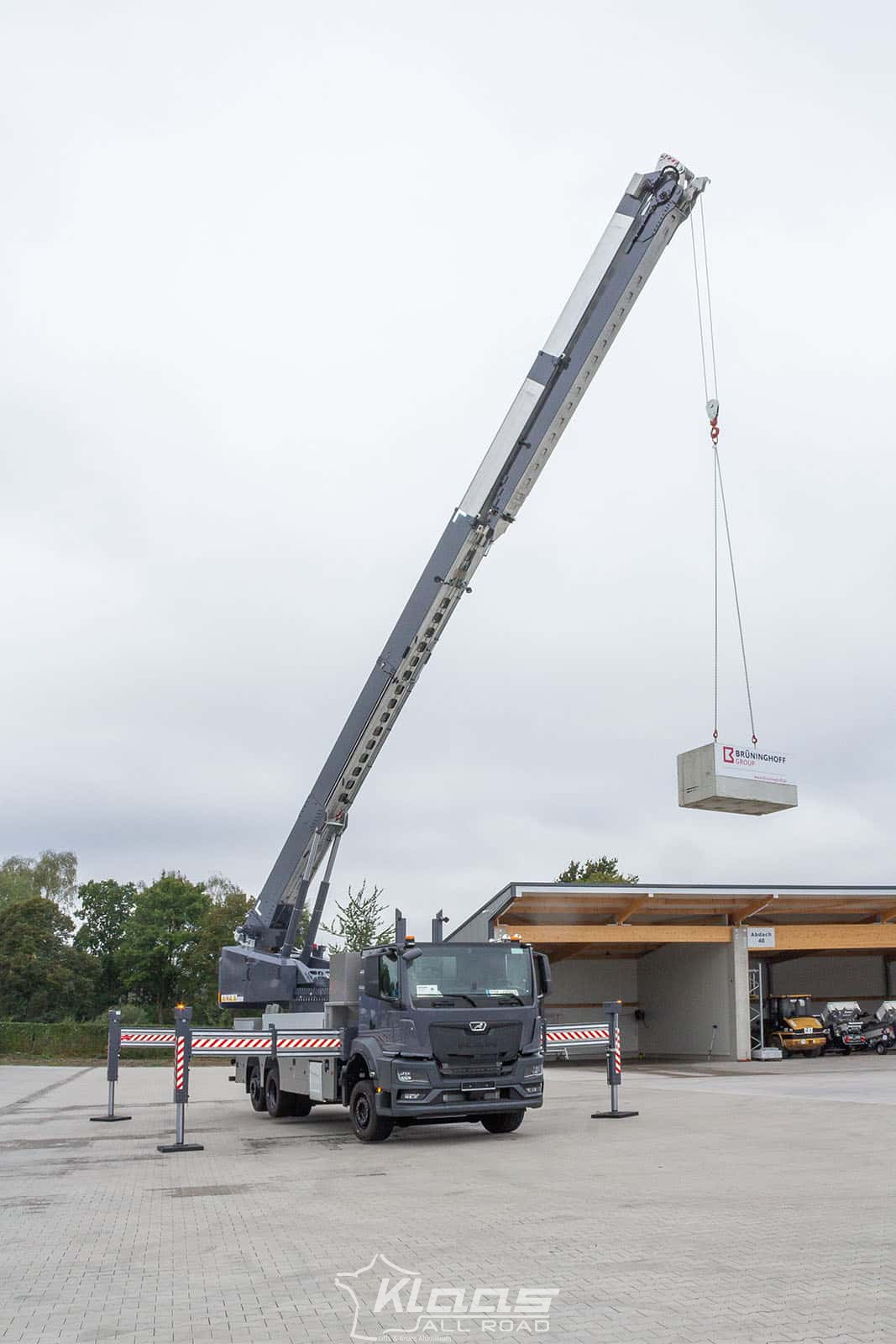 Avec ses vérins de stabilisation robustes, ses doubles poutres horizontales télescopiques et une largeur maximale de déploiement de seulement 7,34 mètres, le K2350 s’impose comme le partenaire idéal, même dans les centres-villes les plus exigus.